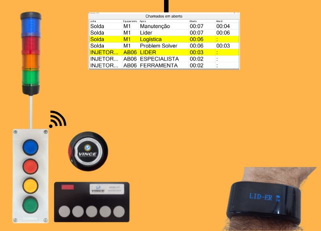 ANDON SMART 4.0Sistema de Chamado sem fio e cadeia de ajuda